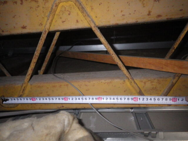 • 鉄筋の露出や錆び:構造内部の鉄筋が露出していないか、錆びが発生していないかを調べます。