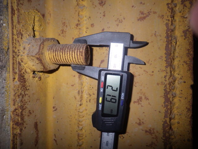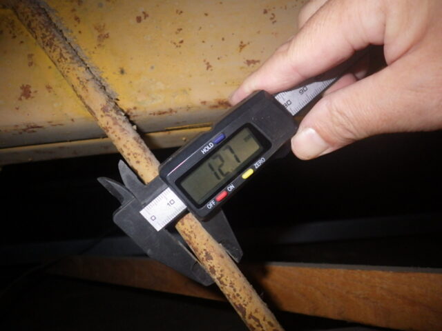 ボルトのサイズ、鉄骨の幅・サイズを計測します。