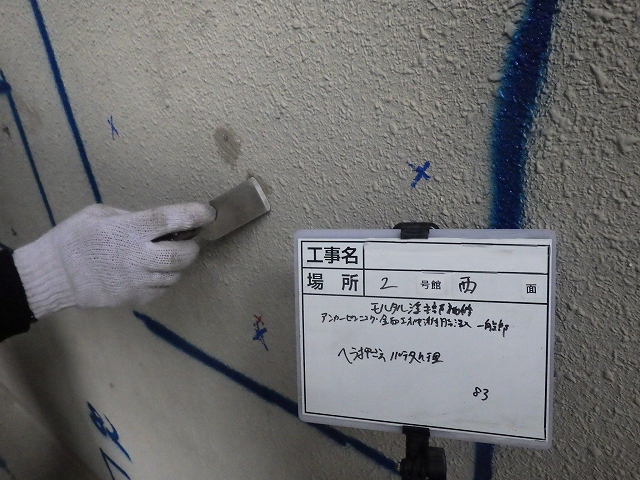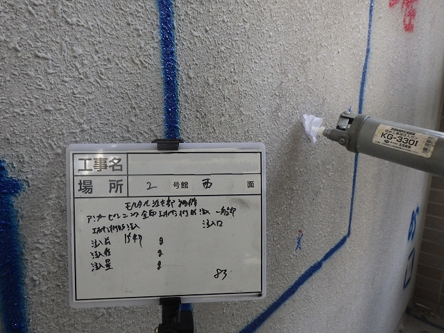 アンカーピンニングエポキシ樹脂注入工法は、外壁のモルタルやタイルの浮きを補修する工法です。