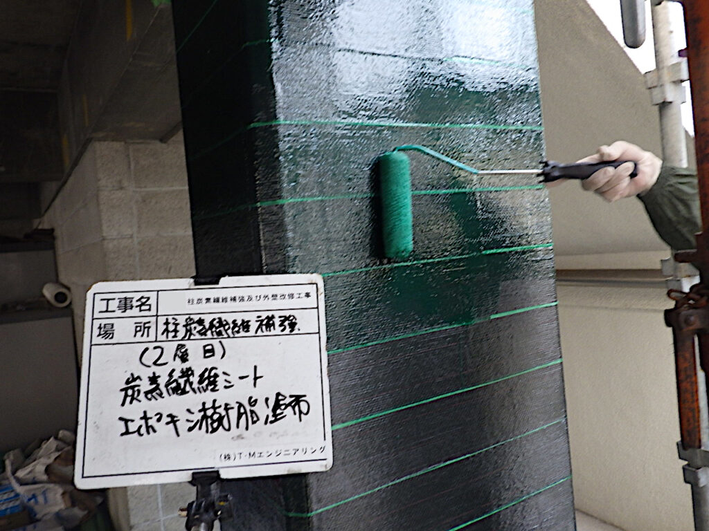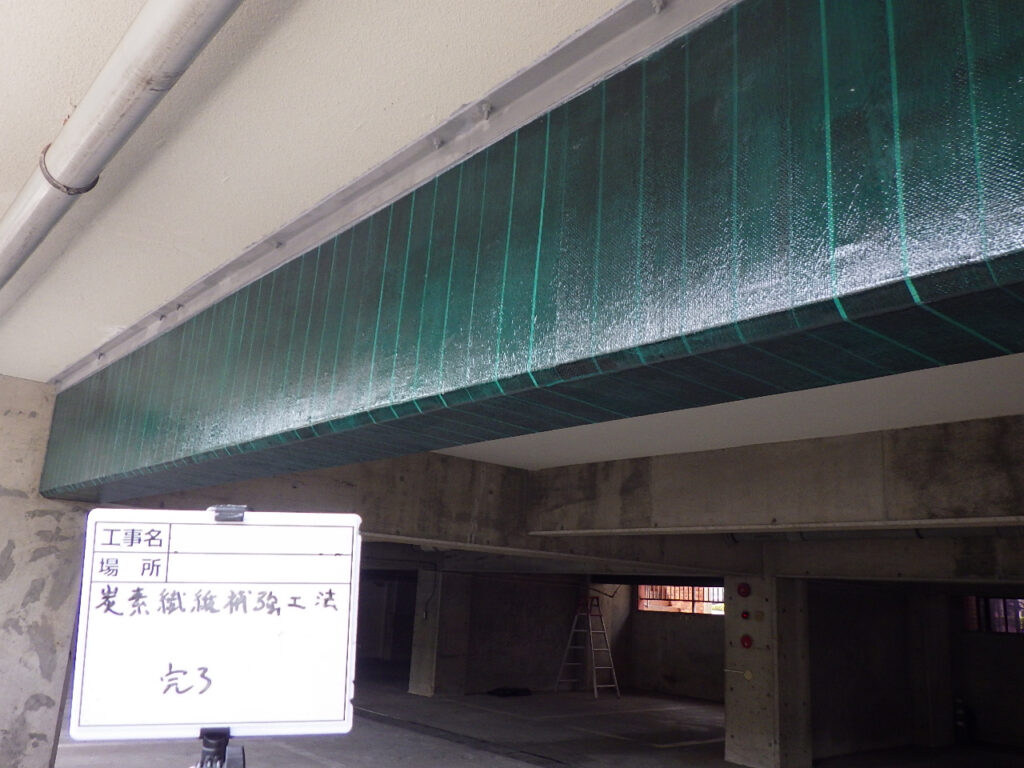 炭素繊維シート補強工法は、鉄筋コンクリート構造物の補強に用いられる技術です。コンクリート構造物の劣化、ひび割れが拡大し、耐久性や強度が低下している場合や塩害による鉄筋腐食、疲労損傷、長期間の暴露により、コンクリート表面が劣化し、補強が必要になった場合に用いられる技術です。炭素繊維を一方向または二方向に配列したシートを、エポキシ樹脂を使って構造物の表面に接着し、CFRP(炭素繊維強化プラスチック)化することで、耐久性や強度を向上させます。
